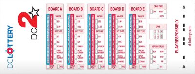 Pick up a DC-2 bet slip from your retailer. Fill out the bet slip and hand it to your retailer to receive a ticket. Check your tickets carefully. DC-2 tickets cannot be canceled.